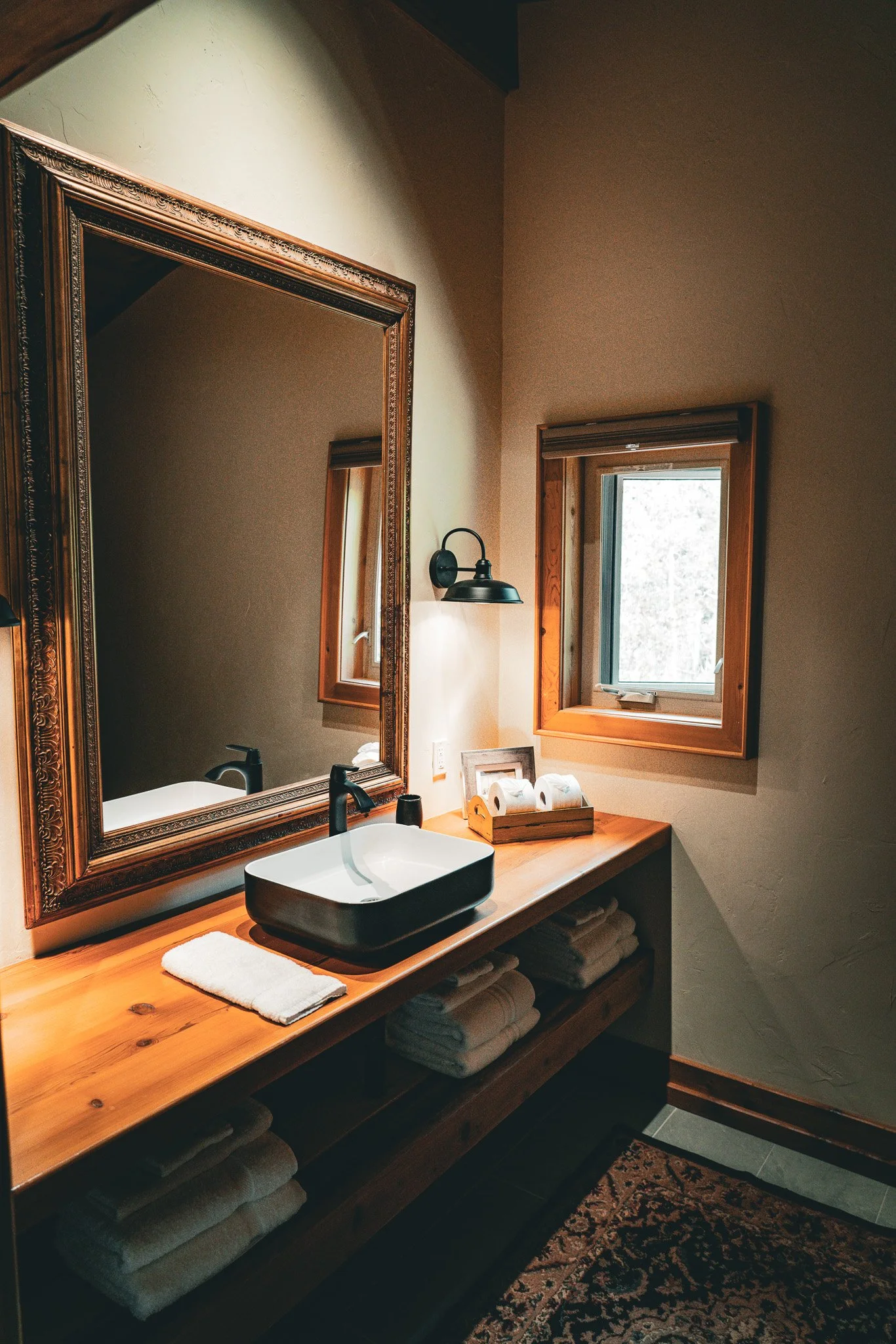 The remodel introduced a second-floor master suite with ensuite bath, creating a private retreat while preserving the home’s timeless atmosphere. Bryan’s Cabin offers a welcoming sense of place, ideal for family stays or quiet moments within the larger estate.