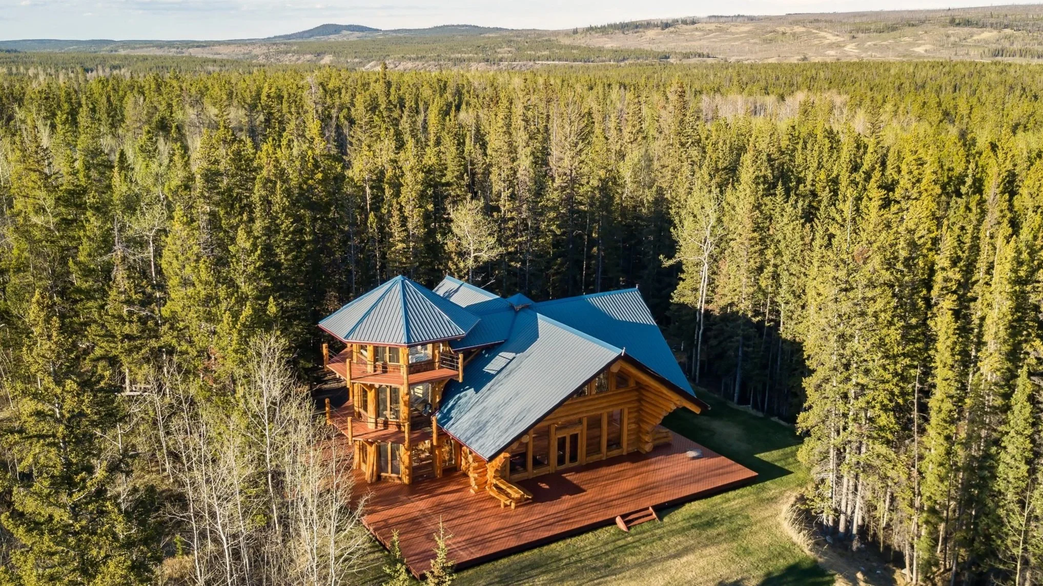 The upper level offers a one-of-a-kind bark-on-alder-wood kitchen, a log burner, and sweeping mountain views from a fully covered cedar deck that wraps the residence in a 360-degree embrace. Below, a full walkout apartment provides a self-contained one-bedroom suite with its own living area, making the home as versatile as it is memorable.