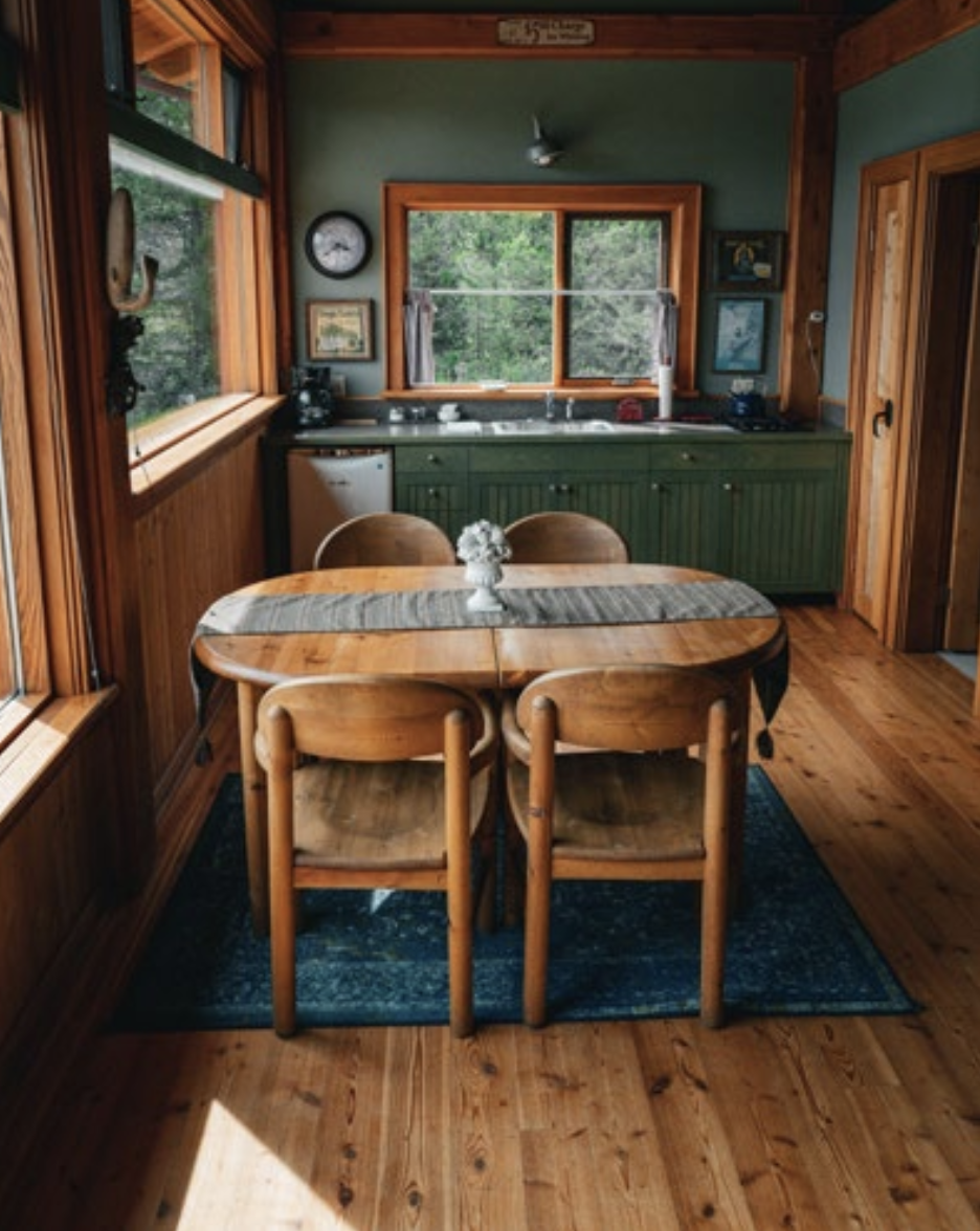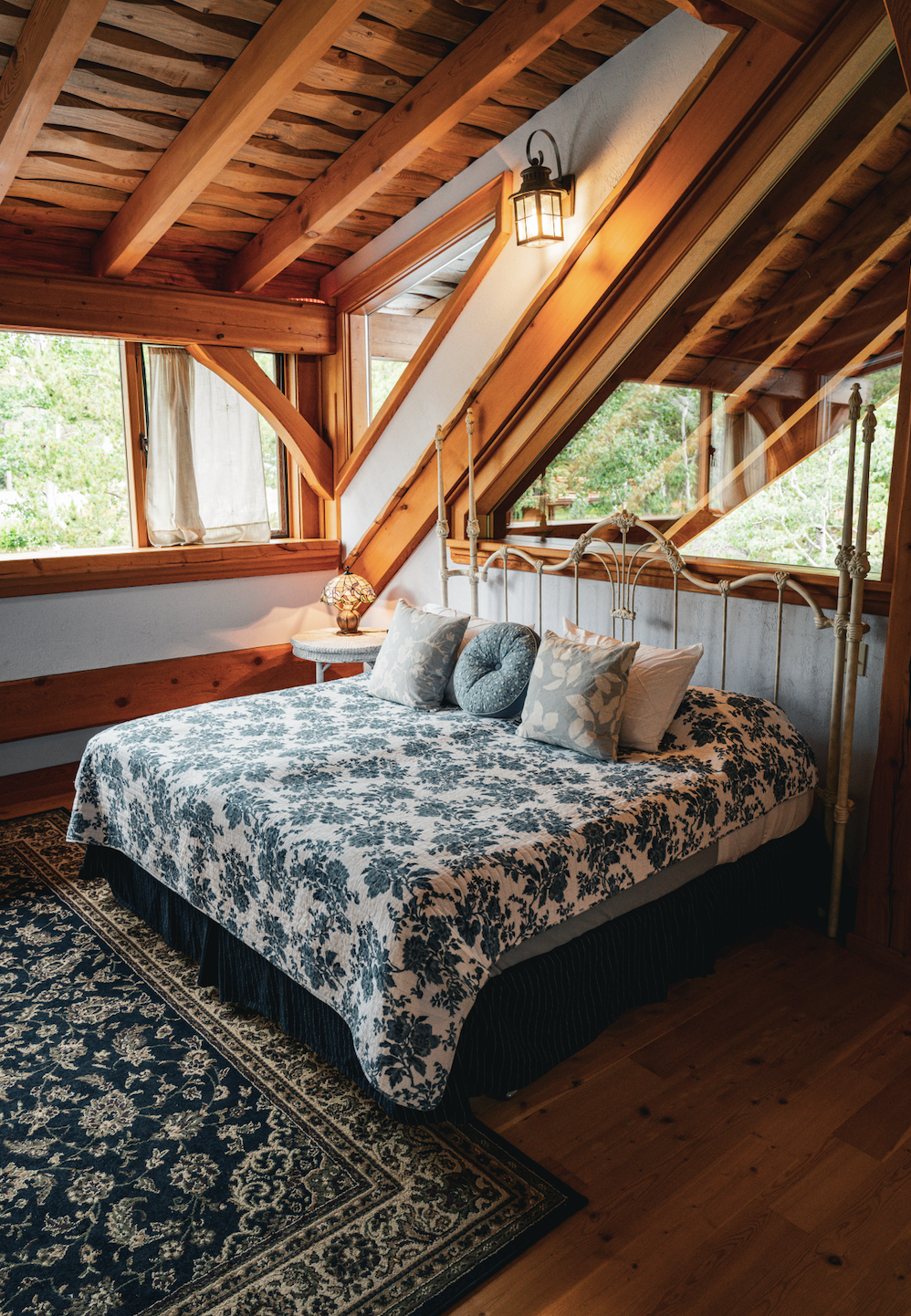 Known as the artist’s cabin, the Bunk House is a timber-frame retreat set directly at the water’s edge. Compact yet full of character, it offers a one-bedroom studio-style layout with a warm, intimate atmosphere.