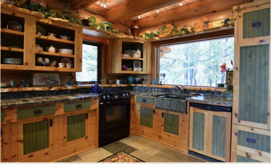 Upper: 1 Bedroom, 1 Bathroom, bark-on-alder-wood kitchen, log burner